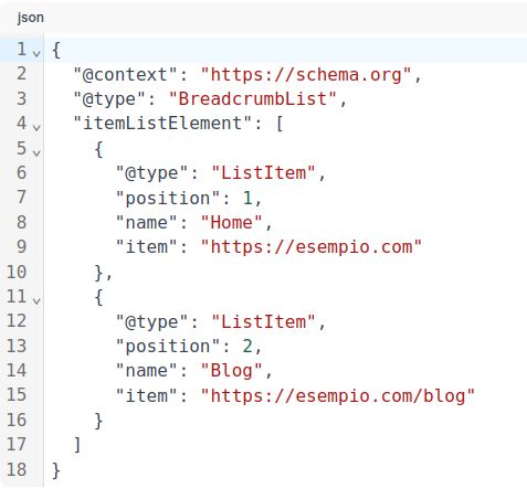 Implementa i breadcrumb con markup JSON-LD: